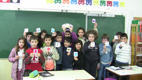 Hoje os alunos do 3.º ano estiveram a trabalhar os números racionais não negativos e fizeram uma atividade que consistia num jogo onde tinham que encontrar frações equivalentes.